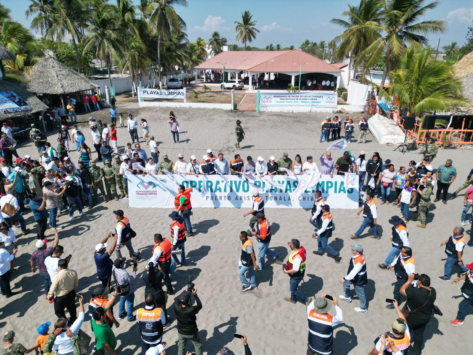 Desde Puerto Arista, en el municipio de Tonalá, el gobernador Eduardo Ramírez Aguilar encabezó el inicio del Operativo Playas Limpias correspondiente al periodo vacacional de Semana Santa 2026, donde agradeció la participación de las y los brigadistas de la Secretaría de Salud, así como de instancias federales, estatales y municipales, y de la sociedad civil que se suman a esta iniciativa.