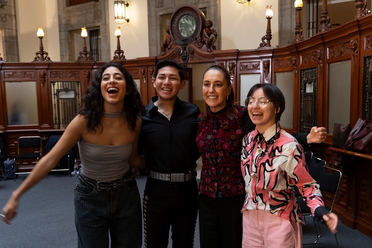 Ciudad de México, 10 de octubre de 2025.- La Presidenta Claudia Sheinbaum Pardo anunció que, como parte de la iniciativa binacional México Canta por la paz y contra las adicciones, las y los ganadores y finalistas iniciarán una gira en la que realizarán conciertos, así como visitas a escuelas y centros de jóvenes para promover, a través de la nueva música mexicana, letras que no hagan apología a la violencia o al consumo de drogas.